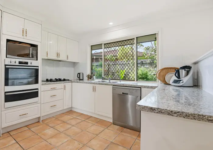 - U-shaped kitchen with stone benchtops